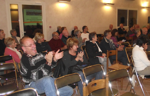 La réunion a débuté par l'annonce de la victoire de l'association face à la municipalité concernant l'attaque en diffamation sur le bulletin d'information du mois de décembre 2009 qui comportait "plusieurs propos diffamatoires"; "le tribunal a rejeté ce matin le recours de la commune qui a même été condamnée à nous verser 1000€ à chacun". Le ton était donné.