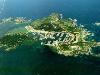 Vue aérienne de l'ile des embiez. Tout le pourtour de l'ile est maintenant classé Natura 2000.