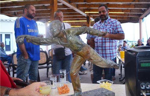 Ainsi donc, après tous ces beaux discours , coupes, bouteilles de vin, montres, furent offerts aux deux équipes finalistes : - Arrivés seconds, Ludovic Grisone de Sanary et Jérémie Bertrand de Rocbaron; - Arrivés premiers : Alain Valdès et Jean-Claude Peronel de Pertuis. Ces derniers eurent en sus l'insigne honneur de se voir remettre une superbe sculpture qui est depuis près de 60 ans dans la famille Pisano. Evidemment tout se termina par le traditionnel pastis sans quoi aucune manifestation ne peut se terminer chez nous, en particulier chez les vrais boulistes provençaux ! Ce fut un très sympathique moment.
