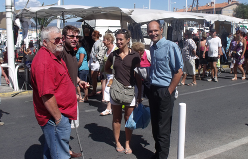 Malgré un mistral bien prononcé, il y avait foule sur le marché et les deux voies du quai Saint-Pierre étaient prises d'assaut. Les vacanciers rencontrés saluaient unanimement cette nouveauté, mais nombre d'entre eux soulignaient la difficulté de stationner. Car la foule était aussi sur la route et il valait mieux prendre son mal en patience pour rentrer chez soi ou tout simplement trouver une place de parking malgré l'ouverture d'un nouveau parc avenue des Charmettes. Les changements de signalisation, les déviations ne font pas que des heureux et beaucoup s'y perdent encore. La plupart des forains ne s'en plaignent pas, et le marché piétonnier permet d'attirer plus de monde. Ce dispositif sécurise ncontestablement la balade. Joseph Mulé, premier adjoint, rappelait: "les parkings sont gratuits et cela ne reste qu'une expérimentation. On tirera le bilan en septembre et l’on ne souhaite pas étendre le marché piétonnier toute l'année". Il affichait une pleine satisfaction au regard du monde présent. Un riverain se qualifiant de "raleur réaliste" discuta avec le premier adjoint : " il n'y a pas de solution miracle. Il ne faut pas voir trop grand par rapport au Brusc, le site n'est pas adapté pour accueillir tout ce monde". Il est certain aussi que la desserte du Gaou par le Mont Salva et le chemin de la Gardiolle n'est pas vraiment adaptée à un important trafic, ce qui a conduit la municipalité à prendre certaines mesures pour éviter une circulation trop dense, comme la fermeture de la cale de mise à l'eau. Les commerçants profitent de cet afflux de monde, mais doivent également s'adapter à ces nouvelles contraintes pour leurs livraisons ou leurs sorties en course. Difficile de satisfaire tout le monde, notamment les riverains, mais on ne peut nier que le marché est aujourd'hui plus attractif. Le comité de quartier discutera de cette expérimentation en septembre.