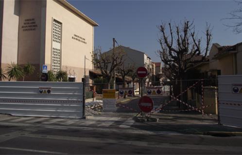 Désormais l'avenue Desmazures est condamnée à la circulation jusqu'à hauteur de la salle Eupalinos. La rentrée et la sortie de l'école Jean-Michel Cousteau s'effectuent au portail situé rue Schuman, et ce jusqu'en juin 2013.