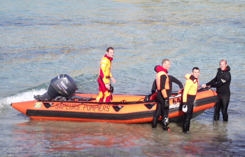 Une manoeuvre s'est déroulée vendredi matin au large de la Cride. Ici arrivée sur la plage de Portissol.