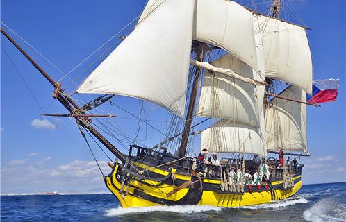Il a fait une entrée assez discrète dans la baie de Sanary, même si nombre de pointus l'entouraient et si quelques coups de canons furent tirés au large. C'est avec regret qu'on le vit arriver toutes voiles baissées devant une poignée de badauds qui furent très vite sommés de quitter le ponton pour ne pas gêner la manœuvre.
