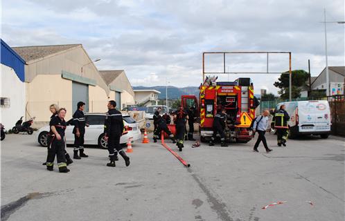 Seul Bertrand, le dirigeant de l'établissement, et les chefs de groupe des pompiers de La Seyne et de Six-Fours étaient au courant. Il s'agissait de simuler en pleine matinée un incendie déclaré dans le local de stockage dans lequel des fumées ont été déclenchées. Le faux départ de feu a immédiatement été détecté par le SSI (Système de sécurité incendie) installé dans l'établissement. Et les 70 personnes, clients et personnel, une personne à mobilité réduite, et les occupants des bâtiments voisins, ont été évacués en 2 minutes 13 secondes ! Sur place 3 Fourgons pompe tonne léger, 3 ambulances, 1 échelle aérienne et 25 sapeurs-pompiers étaient engagés. Une opération réalisée sous le commandement du lieutenant Frédéric Lori à la demande du gérant de l'établissement : « Notre établissement a pris du galon et nous nous sommes considérablement agrandis. J'ai demandé aux pompiers de m'aider à élever le niveau de sécurité des lieux qui s'étendent sur deux bâtiments acollés. Depuis deux ans nous travaillons ensemble pour trouver des solutions afin d'optimiser la sécurité. Nous avons donc établi un programme bien en amont, avec des exercices d'évacuation interne sans l'intervention des pompiers deux fois l'an, le dernier ayant eu lieu en juin. » nous explique Bertrand.