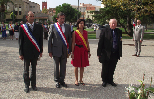Lors de la cérémonie de dimanche une gerbe au nom de la municipalité a été déposée par le député-maire Jean-Sébastien Vialatte, le conseiller général et premier adjoint Joseph Mulé, Sandra Torrès, conseillère régionale et Rabah Zennir, vice-président de l'Asosciation des harkis de Toulon/la Seyne. Une autre gerbe a été déposée par l'Amicale des rapatriés (AFN) Christiane Giordano et Gérard Lopez. Il y avait plusieurs officiels dont une conseillère régionale (FN) de Toulon, des élus de la commune, des représentants d'associations patriotiques comme Mr Faggianelli du Club du 18-Juin (Toulon) ou des autorités miliatires. La cérémonie était menée par l'élu Antonin Bodino et par Alain Trillat. A noter la présence fidèle des deux musiciens de la Six-Fournaise Jean-Marie Lasserre et Henri Debonnaire: "c'est notre façon à nous de monter notre attachement à ces cérémonies".