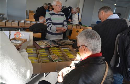 Lorsqu'on parle de vieux papiers ce sont des journaux, des publicités, des gravures. a côté d'eux le salon a aussi ouvert ses portes à d'autres collections comme les photos de films, les 78 tours, les capsules de champagne. A ce propos si l'on connaît les philatélistes ou les cartophiles, savez-vous comment on appelle les collectionneurs de plaques de bouchons de champagne ? ce sont les placomusophiles, appelés ainsi parce que cette petite plaque métallique posée sur le bouchon et qui aujourd'hui voit augmenter le nombre de collectionneurs s'appelle en fait le muselet. Voilà un week-end enrichissant puisque, à part les collectionneurs, peu de gens le savait. Cette association donc, présidée par Jean-Pierre Robert, fervent collectionneur et très actif dans le milieu associatif, regrette que cette année moins de collectionneurs soient venus exposer et vendre. A peine quinze exposants. D'ailleurs moins de gens se sont également déplacés ce samedi.