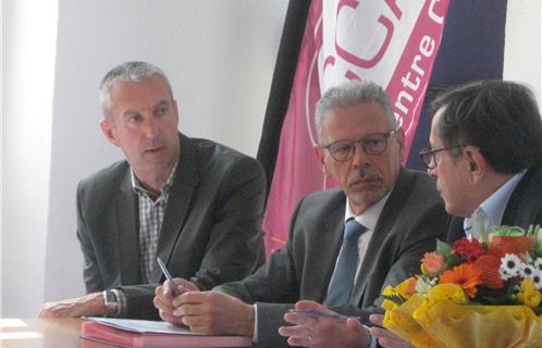 De gauche à droite, Jean-Louis Masson, Président de la Maison de l'Emploi, Maire de La Garde et premier Vice-président du département, Jean-Sébastien Vialatte, Député-Maire de Six-Fours et Président du CCAS, et Patrick Perez, Adjoint au Maire et Vice-Président du CCAS.