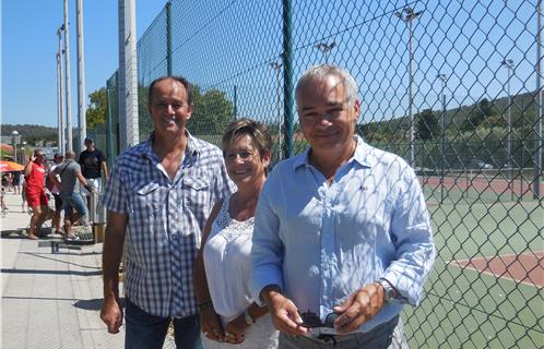 De gauche à droite, André Mercheyer, adjoint aux sports, la juge arbitre Armelle Foulquier et Michel Fernandez, président du Comité du Var de tennis.