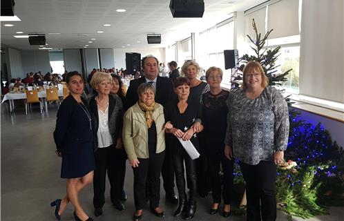 Vers 12H15, Mireille Lamoriniere, Directrice du CCAS de la commune accueille les derniers retardataires. La salle est décorée, les petits plats sont mis dans les grands, un menu gourmand attend patiemment les convives. En cuisine, les serveurs et les chefs sont prêts à s'activer. La Directrice explique : "Depuis quelques années à présent, c'est devenu un rituel. Nous avons un partenariat avec le Secours Catholique et les Restos du Coeur qui nous dressent une liste de bénéficiaires, puis nous convions les gens à ce banquet. Il y a des familles avec des enfants, des couples et des personnes seules également, nous ne faisons aucune discrimination".