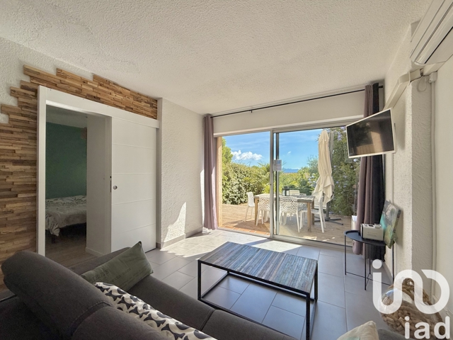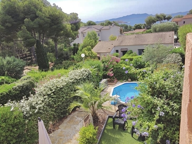 À 550 m de la 'PLAGE DES ENGRAVIERS' et à 20 minutes à pied du Port, au CALME dans une résidence AGRÉABLE construite avec uniquement un étage, appartement rénové de type 2 de 42 m² avec une chambre et un SUPERBE jardin de 73 m2 avec PISCINE et APERÇU MER.