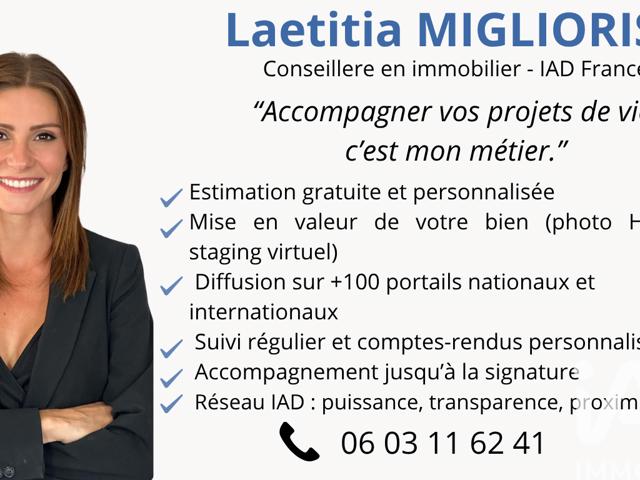La présente annonce immobilière a été rédigée sous la responsabilité éditoriale de Mme Laetitia Migliorisi mandataire indépendant en immobilier (sans détention de fonds), agent commercial de la SAS I@D France immatriculé au RSAC de TOULON sous le numéro 881236665, titulaire de la carte de démarchage immobilier pour le compte de la société I@D France SAS.