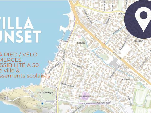 A 10 minutes de l’accès à l’autoroute A50, à 5 minutes du centre-ville de Six-Fours-les-Plages et à 3 minutes de la plage de Bonnegrâce.