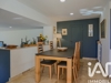 Une vaste pièce de vie lumineuse ouverte sur le jardin par de larges baies vitrées à galandage.