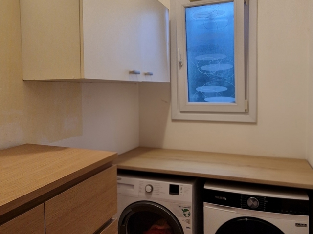 Le second appartement en rez-de-chaussée, réparti sur deux niveaux, dispose d’une belle pièce de vie climatisée avec cheminée et terrasse, d’une cuisine aménagée, de quatre chambres au total, deux en plain pied et deux à l'étage, d’une salle de bain, d’un WC indépendant et d’un accès aux combles aménageables. Ce bien dispose aussi d'une grande cour privative avec l'accès au garage.