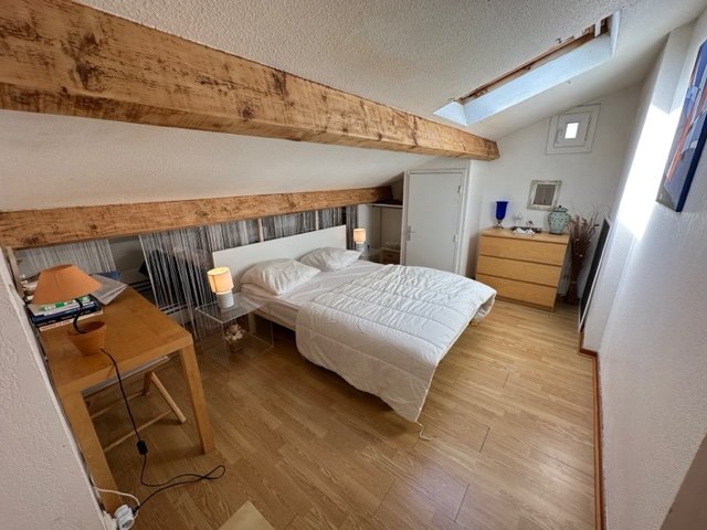 Petite r?sidence priv?e avec sa piscine (gratuite), acc?s pi?ton au port et ? la plage, bel appartement duplex de 45 m? environ, balcon am?nag? de 10 m?, vue d?gag?e sur les jardins, au calme, 1 chambre et 1 chambre mezzanine, cuisine ouverte sur s?jour lumineux, salle de bain (baignoire + WC inclus).