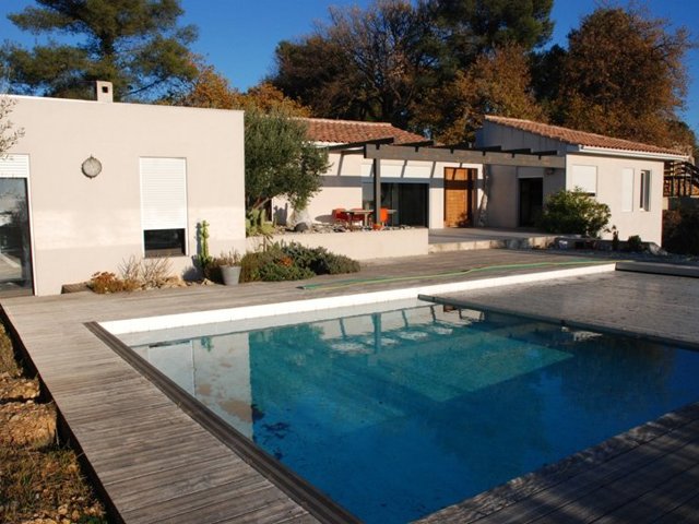 Au même niveau que la maison et à la suite de la grande terrasse (avec voiles d'ombrage) se trouve la belle piscine (10 m x 5 x 1.30 m prof).