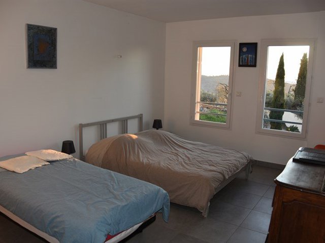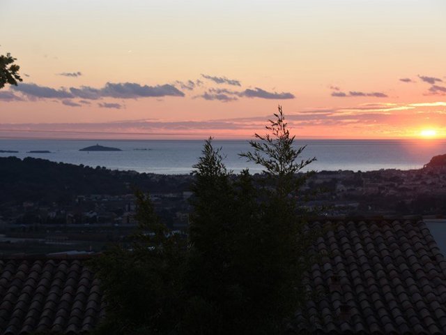 Villa récente avec belle piscine, terrasse, jardin, barbecue (plancha gaz), très belle vue sur la baie de Sanary sur Mer-Six-Fours les Plages, sur les hauteurs d'Ollioules, au calme.