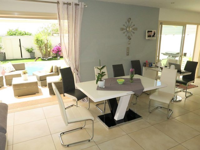 Villa très récente sur 2 niveaux avec belle piscine, terrasse, jardin, barbecue (plancha gaz), dans un quartier très calme de Sanary sur Mer, à moins de 5 mn de la première plage de sable (plage de la Gorguette).