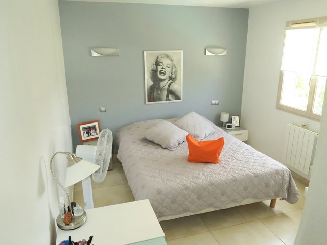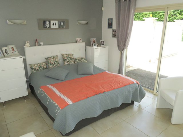 Villa équipée de 3 chambres (6 couchages maxi) ; la 1ère type suite parentale avec sa salle d'eau au rez-de-chaussée, les 2 autres à l'étage.