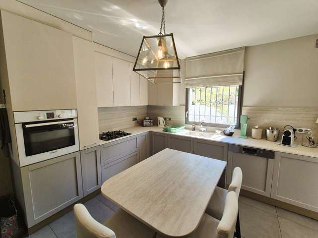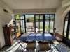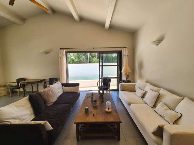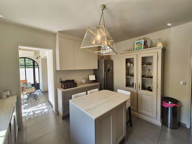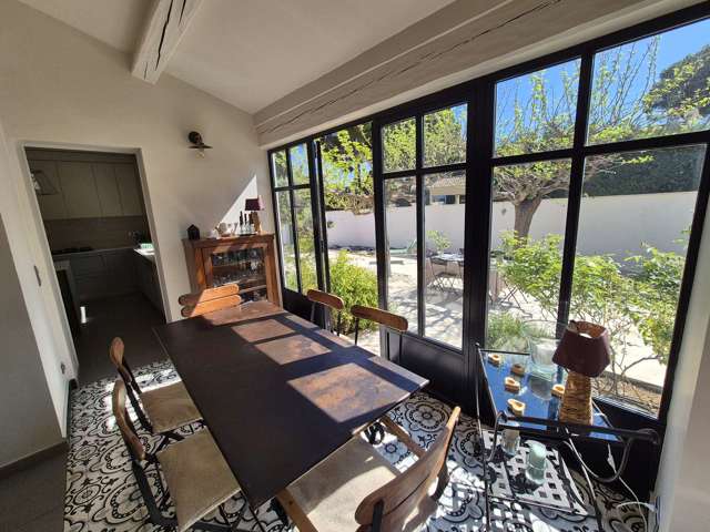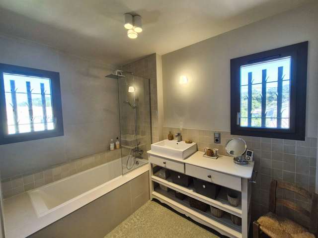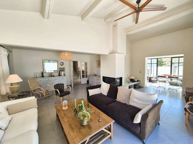 Au rez-de-chaussée, vous découvrirez un vaste séjour avec de très beaux volumes et de hauts plafonds, ouvert sur une élégante véranda comprenant un espace dinatoire convivial, ainsi que sur la terrasse et la piscine. Une cuisine moderne entièrement équipée est également à votre disposition. Ce niveau comprend aussi une petite chambre avec lit simple ainsi quune salle deau avec WC.