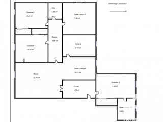 Deux chambres spacieuses (14,5 et 14,2 m²) disposent de placards intégrés.