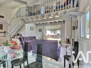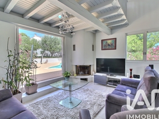 iad France - Elisabeth Trocq vous propose: Vivre au calme tout en étant à 5 MINUTES A PIED DES COMMODITÉS et 15 MINUTES du PORT. Implantée sur un terrain clos de 930m2 environ, cette villa totalement rénovée propose de nombreux espaces de vie intérieurs comme extérieurs. Dans la partie principale, de plain-pied, vous découvrez une belle cuisine équipée donnant sur un vaste séjour ouvert sur une terrasse exposée sud. Dans la continuité, un salon chaleureux avec cheminée et une salle à manger s'ouvrent directement sur l'espace piscine. Une grande mezzanine surplombe l’ensemble. Trois chambres dont deux avec leur propre salle d’eau et une avec dressing complètent le tout. A l'extérieur, une voile d'ombrage protège l'espace repas. Une belle et grande terrasse permet aussi de profiter du soleil du sud avec la piscine. Quant au boulodrome, il est le lieu de vos futurs moments privilégiés lors des longues soirées d'été. Un deuxième logement indépendant, communiquant aussi par l’intérieur, offre une cuisine équipée, un espace salon, deux chambres, une salle d'eau et 2 WC. Il est l’idéal pour accueillir famille ou amis. Les plus : un vaste garage et la possibilité de garer plusieurs véhicules. Prestations de qualité: climatisation réversible, doubles vitrages, volets roulants électriques, portail automatique...