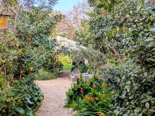 Vous profiterez d’un jardin aux recoins intimes, plat et généreusement fleuri, idéal pour les jeux d’enfants, les repas en extérieur et la détente à l’ombre de la végétation.