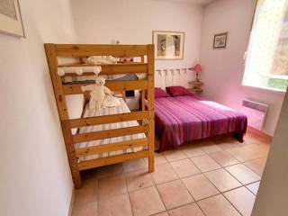 Terrasse (15 m?) avec mobilier de jardin (1 table, 6 chaises), 1 chaise longue et lave-linge - Salon confortable avec canap?, fauteuils et t?l?viseur - Pi?ce principale avec espace repas - Coin cuisine ?quip?e (plaque vitroc?ramique 4 feux - hotte aspirante - r?frig?rateur cong?lateur - four - micro-ondes - cafeti?re ?lectrique - - lave-vaisselle) - 1 chambre avec 1 lit 2 places (en 140) avec penderie - 1 chambre avec 1 lit 2 places (en 140) avec grand placard et 2 lits superpos?s 1 place (en 90) - Salle d'eau avec douche - WC ind?pendants.