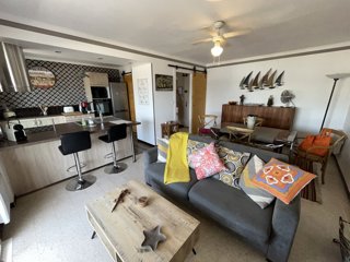 Situé au 2ème et dernier étage (sans ascenseur), T3 composé d'une entrée, un salon-salle à manger avec cuisine ouverte entièrement équipée, 2 chambres climatisées (l'une avec lit double en 160 et l'autre avec 2 lits simples en 90 + petite terrasse), une salle d'eau et un wc indépendant.