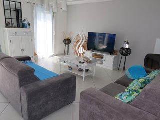 Composée au rez-de-chaussée d'une grande pièce à usage de salon-salle à manger et cuisine ouverte entièrement équipée, une grande chambre (2 lits simples en 80 identiques et donc modulables en 1 lit double en 160), une salle d'eau, un wc indépendant et une buanderie.